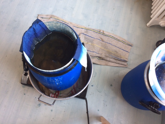 Oxydation du tissu à la sortie de la cuve, le tissu passe du vert au bleu. Toujours un moment merveilleux.