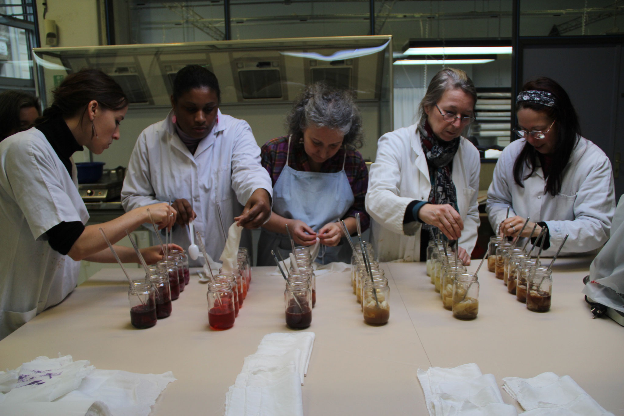 Au programme, indigo, technique de mordançage, teinture de gaude, garance, châtaignier, cochenille, campêche... post-mordançage à l'alun et au fer, double teinture... un stage INTENSIF !